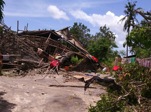 den Regen und Sturm zerstört waren. Gefühlt nur noch 1/3 aller Häuser waren